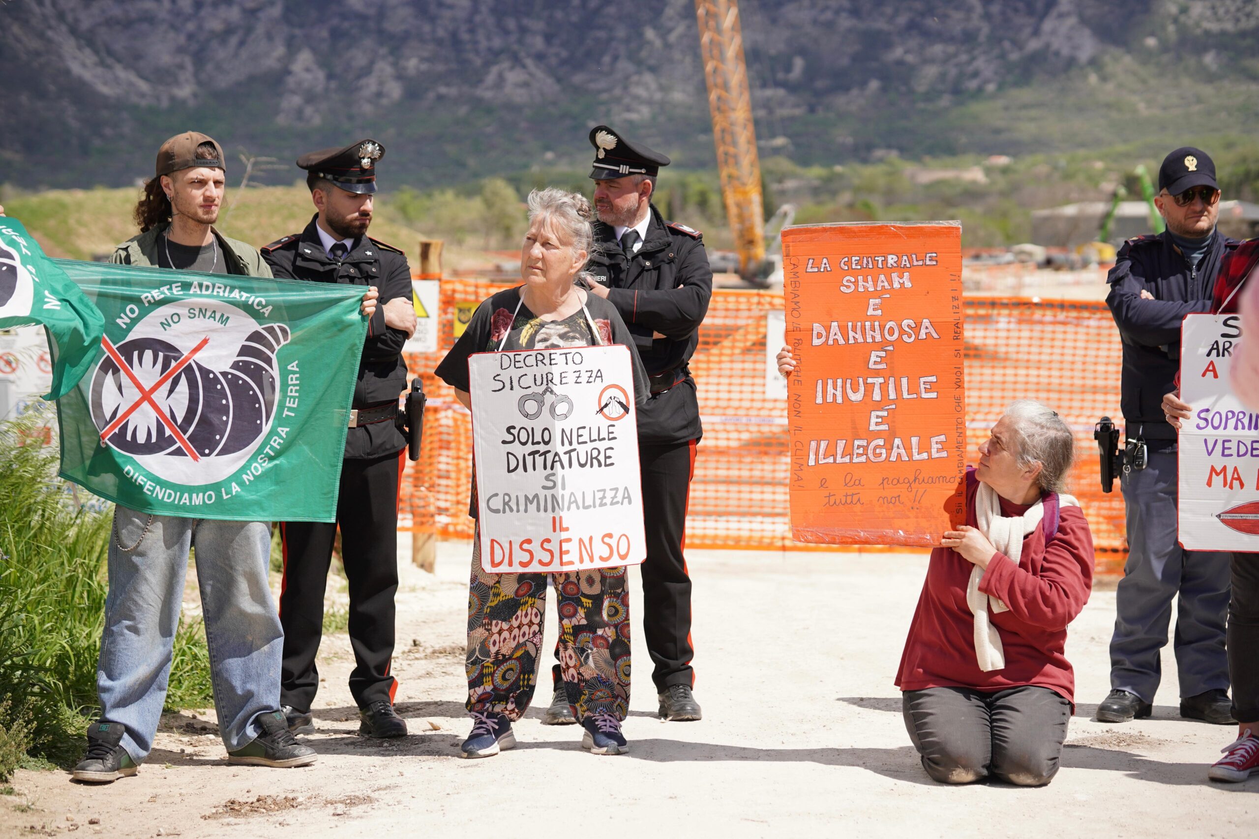 «Noi abbiamo annunciato un presidio di disobbedienza civile non violenta. Siamo pienamente consapevoli della responsabilità che ci assumiamo e ribadiamo con forza che, in uno Stato di diritto qual è l’Italia, nessuno può ritenersi al di sopra della legge, nemmeno la Snam. È inaccettabile che Snam continui a operare nell’illegalità senza che alcuna autorità competente intervenga. Ricordiamo che questo cantiere è stato aperto in assenza dell’adempimento delle prescrizioni ante operam previste dal decreto VIA. Inoltre, Snam prosegue i lavori di costruzione della centrale con un’autorizzazione ormai scaduta. Durante le operazioni sono stati distrutti beni storici e culturali di eccezionale valore, comprese le tracce di un insediamento risalente a quattromila anni fa. Sono stati abbattuti illegalmente 317 alberi di ulivo. La nostra azione dovrebbe essere chiamata obbedienza civile e non disobbedienza, perché ha come unico obiettivo il ripristino della legalità».