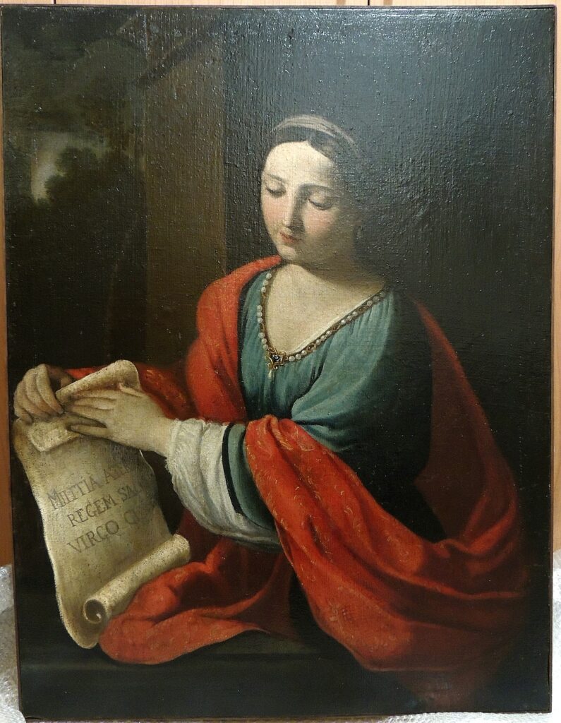 Il dipinto, che ritrae una “santa giovanetta, vestita di un abito verde e di un manto rosso, accarezzando affettuosamente un agnello, mentre sulla mano destra reca la palma del martirio”, era stato alterato con una ridipintura superficiale volta a mascherarne l’identità originale. In particolare, la figura dell’agnello, elemento iconografico distintivo di Sant’Agnese, era stata occultata per trasformare l’opera in una generica Sibilla, nel chiaro intento di eludere i controlli e facilitarne l’immissione nel mercato antiquariale illecito.