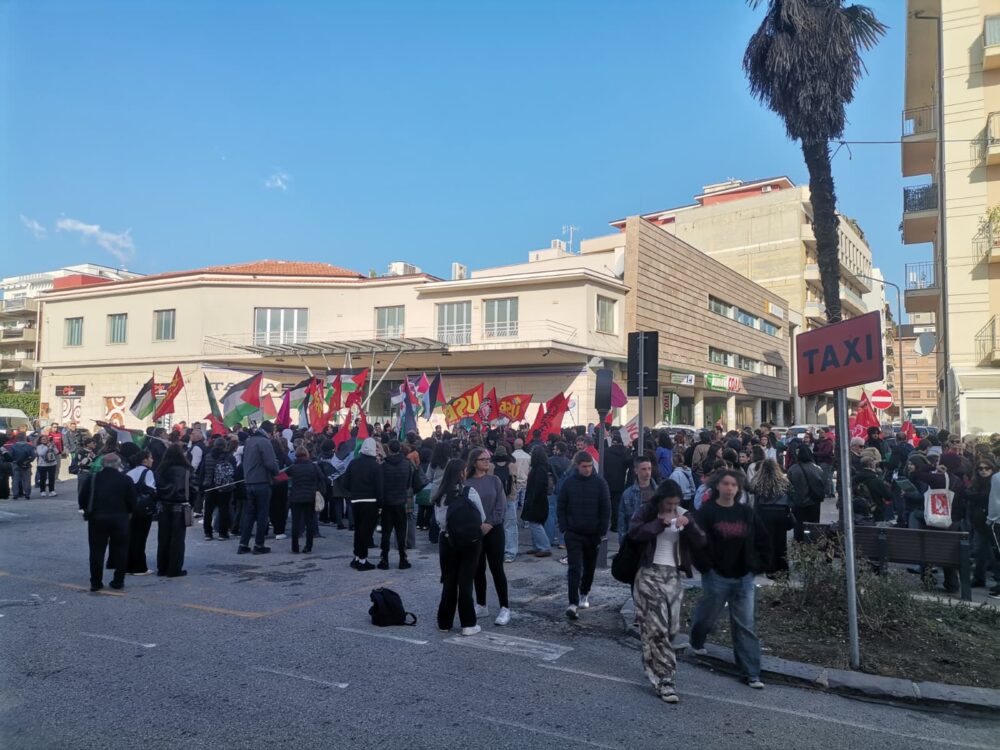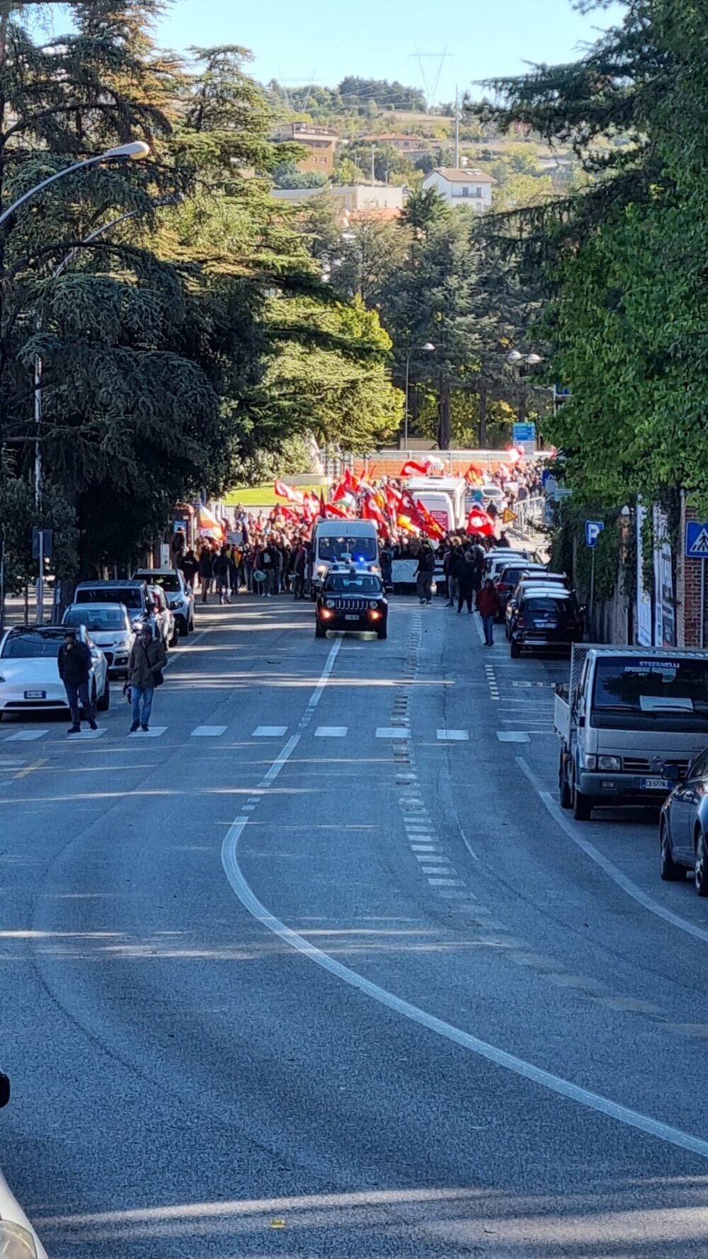 Diverse centinaia, tra studenti e lavoratori, hanno preso parte al corteo partito da Colle Sapone che ha fatto tappa alla fontana luminosa per dare spazio agli interventi, prima di dirigersi alla villa comunale.