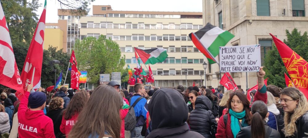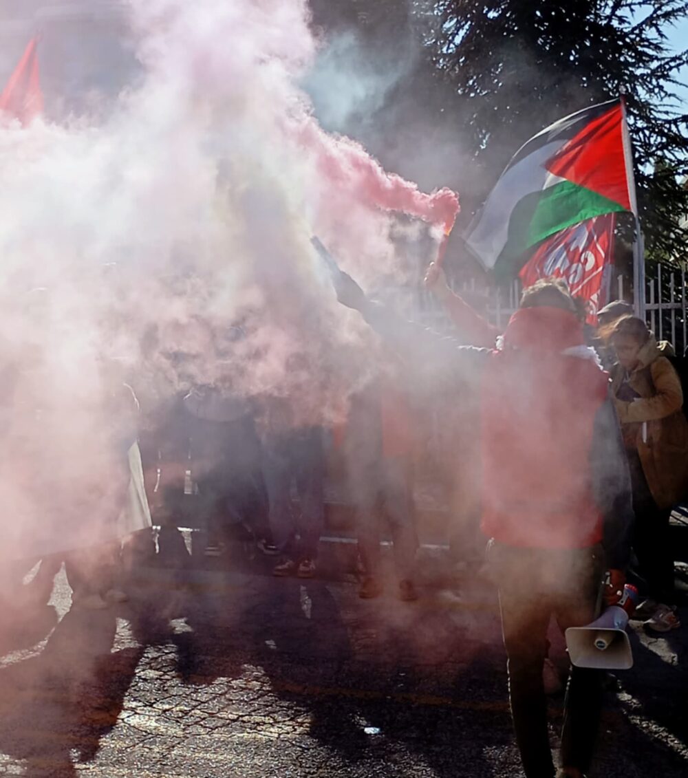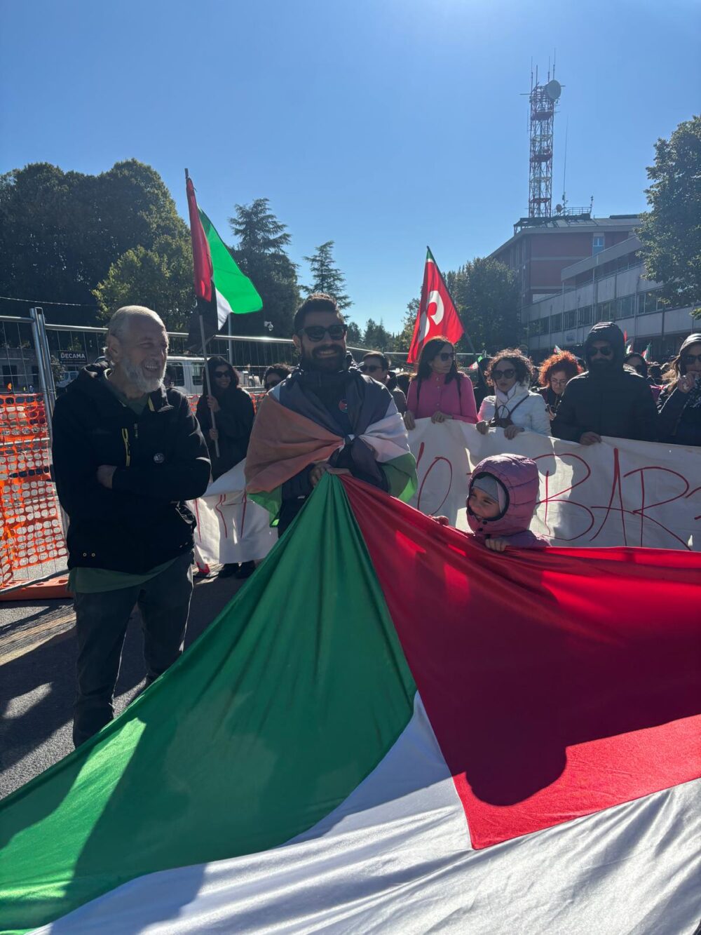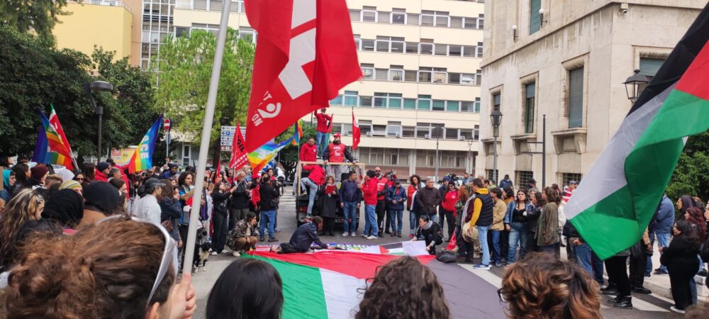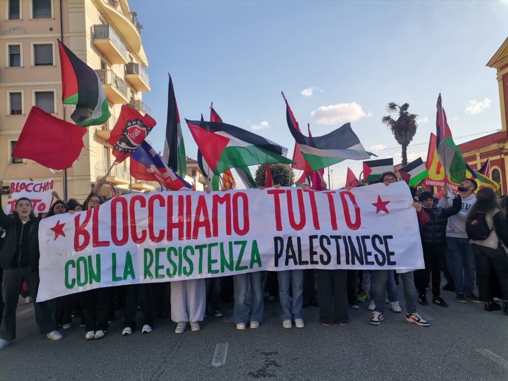 «Quella di oggi è una mobilitazione straordinaria, c’è uno sciopero generale – aggiunge – La piazza è piena di studenti e lavoratori che vogliono dimostrare solidarietà verso il popolo palestinese, condannando e chiedendo di fermare immediatamente la macchina bellica israeliana che sta compiendo un genocidio appunto a danno del popolo palestinese, condannando tra l’altro Israele rispetto all’ultimo atto di pirateria fatto contro la Flotilla che ha provato a rompere un blocco illegale di Israele per portare aiuti umanitari e provando a costruire anche i corridoi umanitari. Noi chiediamo immediatamente il riconoscimento dello stato di Palestina e di interrompere qualsiasi relazione e rapporto con Israele e il governo israeliano».