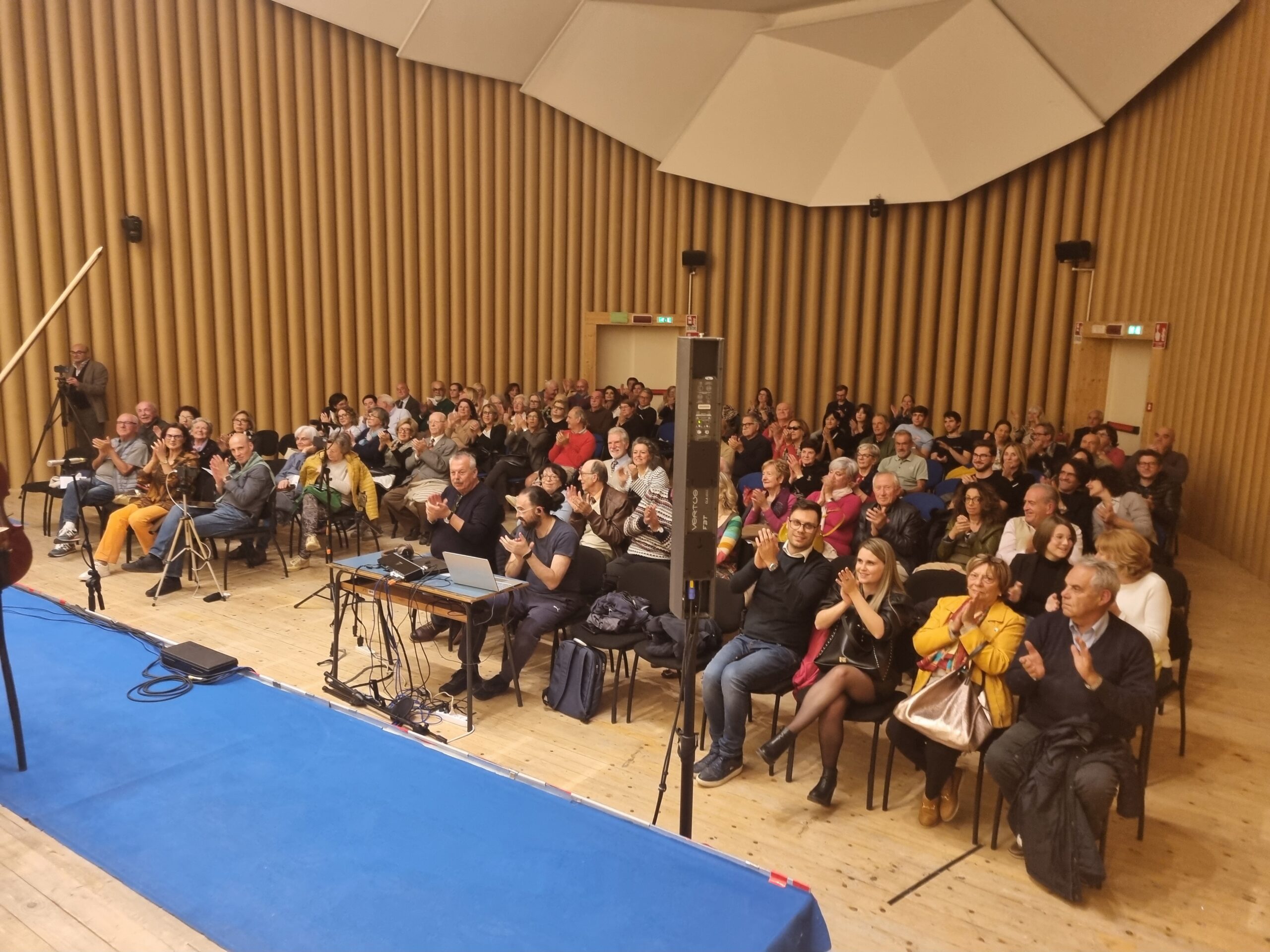 La sala gremita ha tributato all’Orchestra da Camera Aquilana numerosissimi applausi e apprezzamenti alla bravura degli interpreti a e alla scelta del repertorio.
