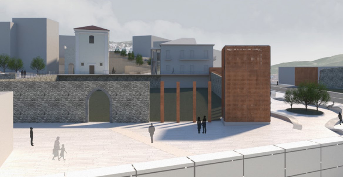 In ultimo, il progetto prevede la sistemazione degli spazi pubblici risultanti dalla demolizione, inclusa la riqualificazione di Piazza Santa Croce, con la creazione di un sagrato per la chiesa e l’inserimento di percorsi di accesso al centro storico, come una scalinata e un ascensore.