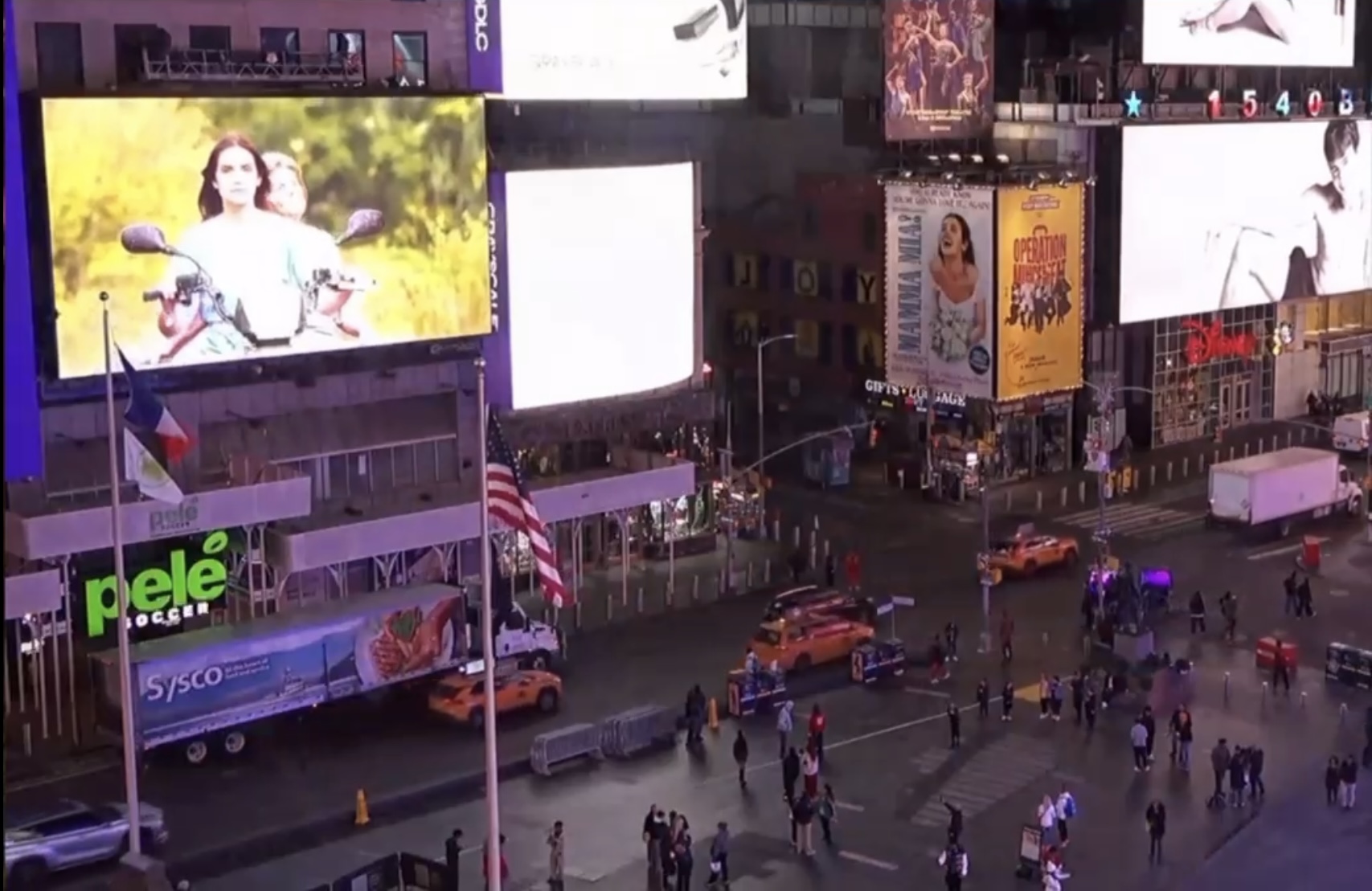 Tra la folla che cammina a Times Square, qualcuno si ferma, alza lo sguardo, sorride. Sui led tra i più celebri al mondo scorrono immagini di paesi e castelli, montagne e mani che impastano, volti e parole che accolgono.