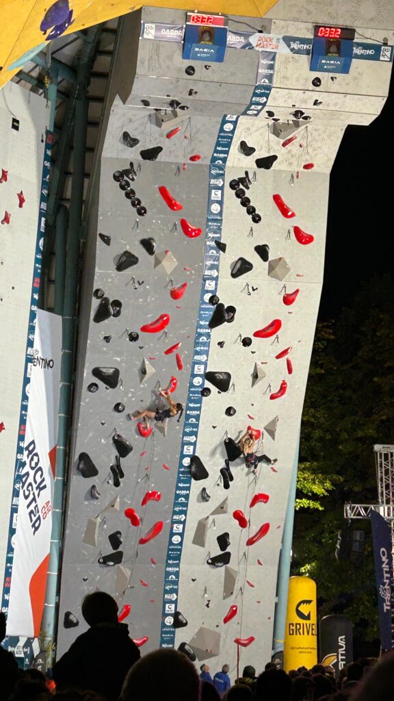 Nella serata inaugurale, dedicata al tradizionale Duel Lead, il pubblico ha assistito a una gara spettacolare, chiusa con le vittorie di Adam Ondra e Brooke Raboutou. Il format, che mette due atleti uno contro l’altro sulla stessa parete lead, ha offerto come sempre tensione e colpi di scena.