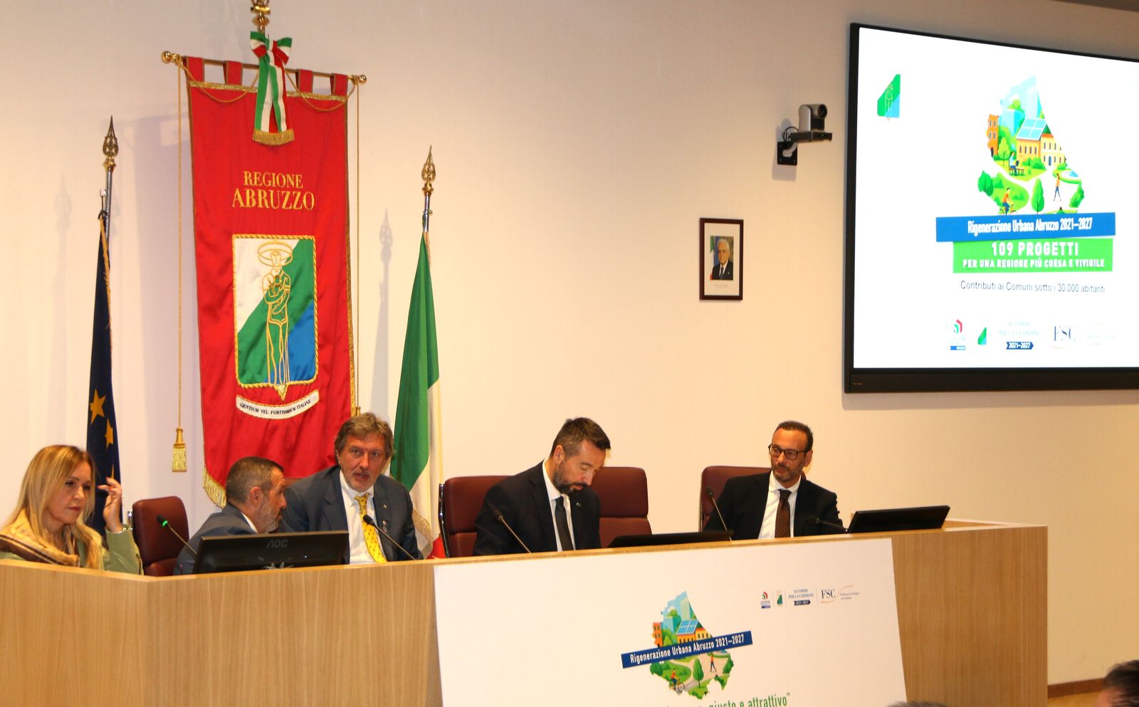 Si è tenuta nella sala ipogea del Consiglio regionale all’Aquila la presentazione dei 109 Comuni beneficiari del bando Rigenerazione Urbana, un’iniziativa che assegna complessivamente 78 milioni di euro provenienti dall’Accordo sul Fondo per lo Sviluppo e la Coesione 2021-2027, cui si aggiungono anche 27 milioni di cofinanziamento regionale.