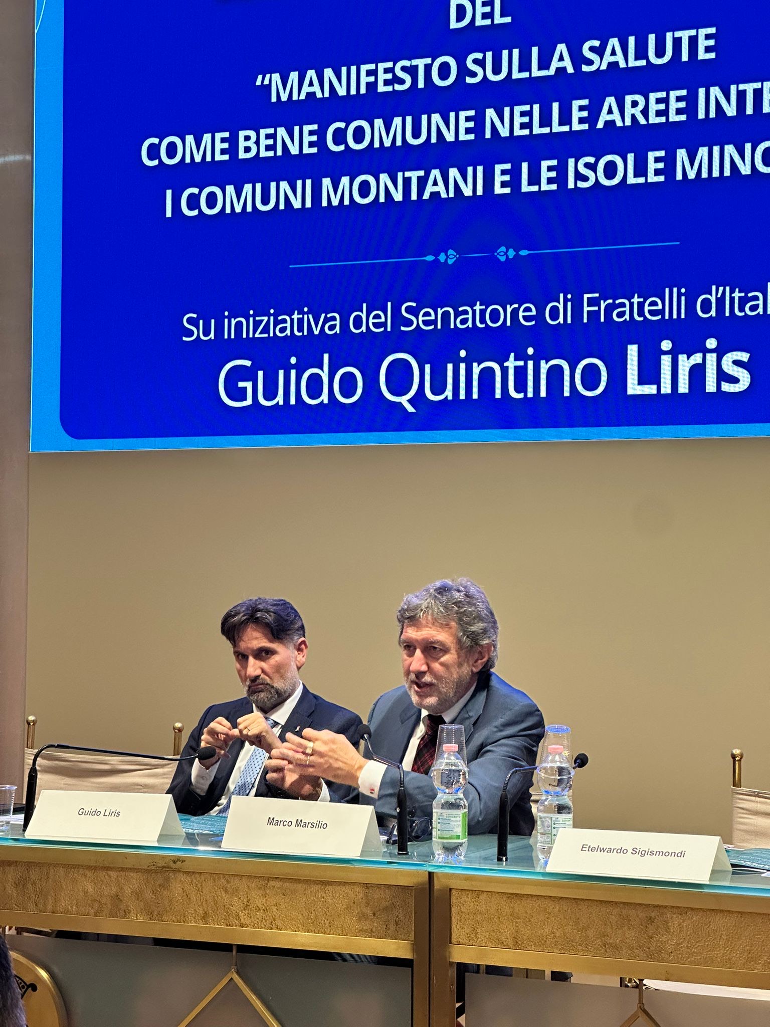 Questo l’obiettivo del “Manifesto sulla salute come bene comune nelle aree interne, i comuni montani e le isole minori”, illustrato nel corso del convegno promosso dal senatore aquilano Guido Liris, capogruppo di Fdi in Commissione Bilancio e presidente dell’Intergruppo parlamentare aree interne, che si è tenuto oggi nella Sala Zuccari di Palazzo Giustiniani, a Roma.