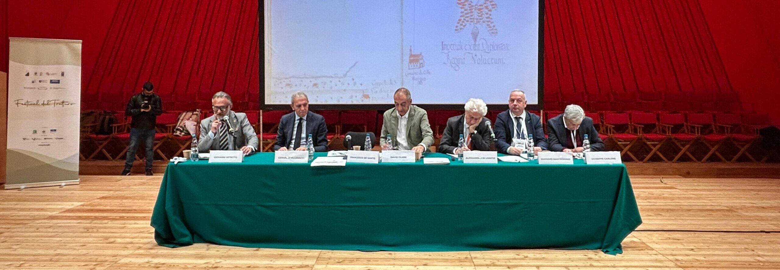 La bozza dell’accordo è stata presentata questa mattina, all’auditorium del parco del Castello, in occasione del Festival del Tratturo, promosso dall’associazione Il Tratturo Magno 4.0, presieduta da Danilo Taddei, con il patrocinio del Ministero del Turismo, il Ministero della Cultura, delle Regioni Abruzzo e Molise, della Provincia dell’Aquila, dell’Università dell’Aquila, del Comune dell’Aquila, di USRA e USRC, della Soprintendenza Archeologia Belle Arti e Paesaggio L’Aquila-Teramo, dell’Archivio di Stato di Foggia, di Federparchi, della Camera di Commercio Gran Sasso d’Italia, della Camera di Commercio Chieti-Pescara e di Confindustria L’Aquila, con Il Capoluogo d’Abruzzo media partner.