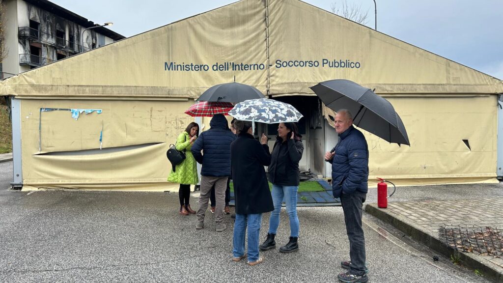 Incendiata anche la “Tenda amica” montata dalla Protezione civile che, per lunghi anni, è stata luogo di incontro e di socialità per i residenti delle palazzine antisismiche, soprattutto per anziani e bambini, prima di essere dismessa e, in ultimo, distrutta dalle fiamme.
