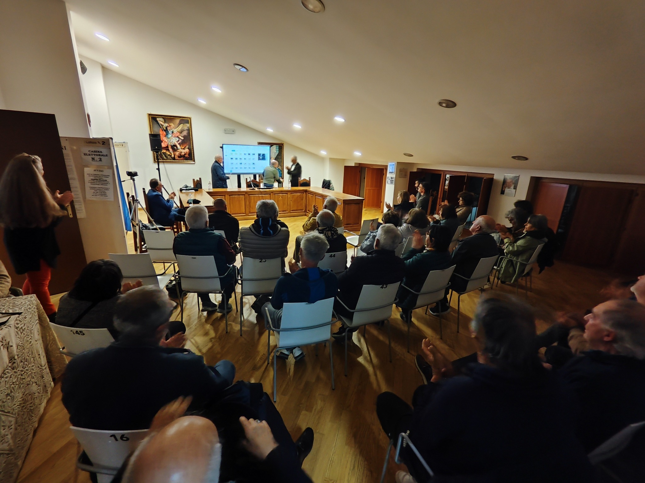 Nel municipio di San Panfilo d’Ocre incontro infine dedicato al “Il Polittico di Sant’Angelo d’Ocre e il Maestro dei Polittici Crivelleschi nell’Abruzzo del XV secolo” a cura sempre di Daniele Lauri, introdotto dal sindaco Gianmatteo Riocci, su un chiaro emblema dell’importanza del cenobio per l’ordine osservante, posto in un’area montana come quella aquilana, inserita all’interno di una rete di relazioni con gli altri conventi sparsi nei territori abruzzesi da un versante all’altro della catena appenninica, realizzato per il soppresso Convento di Sant’Angelo d’Ocre, oggi conservato presso il Museo Nazionale d’Abruzzo, con al centro la Vergine in trono col Bambino, affiancata da santi legati all’ordine francescano, come San Francesco d’Assisi, San Bonaventura da Bagnoregio, San Bernardino da Siena e Giovanni da Capestrano.
