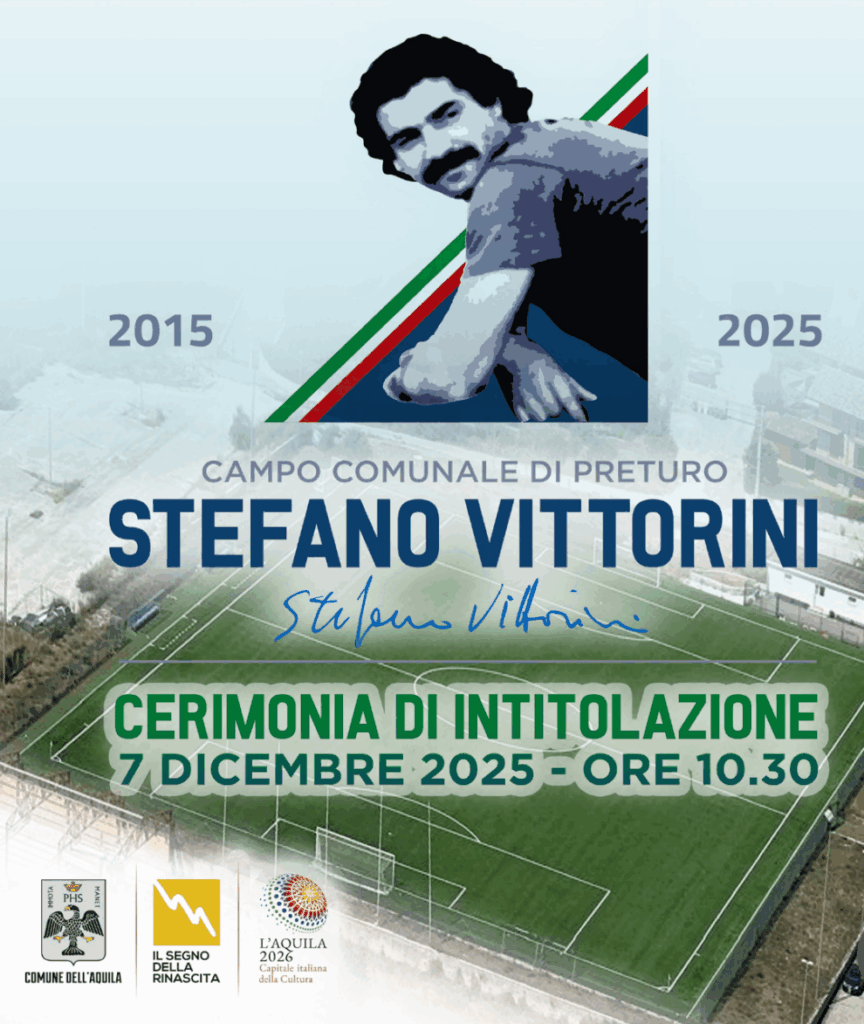 A dieci anni dalla sua prematura scomparsa, la giunta comunale ha approvato la proposta del sindaco Pierluigi Biondi di intitolare il campo sportivo di Preturo alla memoria di Stefano Vittorini, figura di riferimento della politica aquilana, già consigliere, presidente del Consiglio comunale, assessore e vicesindaco. La richiesta è stata sottoscritta dai sindaci e dai presidenti dell’assise civica che si sono susseguiti negli ultimi 30 anni.
