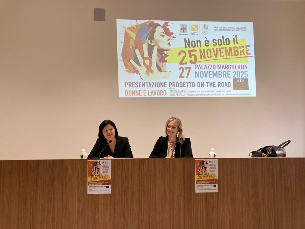 Lavoro e donne nel progetto “On the road”, presentato questa mattina a palazzo Margherita dall’assessore alle Pari opportunità del Comune dell’Aquila, Ersilia Lancia e dalla presidente della Commissione Pari opportunità del Consiglio regionale, Rosa Pestilli.