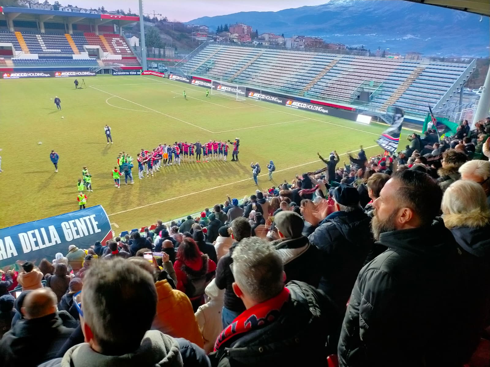 Al fischio finale esplode la festa in campo e sugli spalti, con L’Aquila che coglie la quarta vittoria di fila ed accorcia a meno sei dalla vetta.