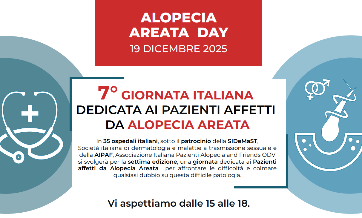 Con un open day gratuito sull’Alopecia Areata, venerdì 19 dicembre l’ospedale dell’Aquila sarà il punto di riferimento, in Abruzzo, della settima giornata nazionale dedicata all’informazione su questa patologia, promossa da Sidemast e Aipaf.
