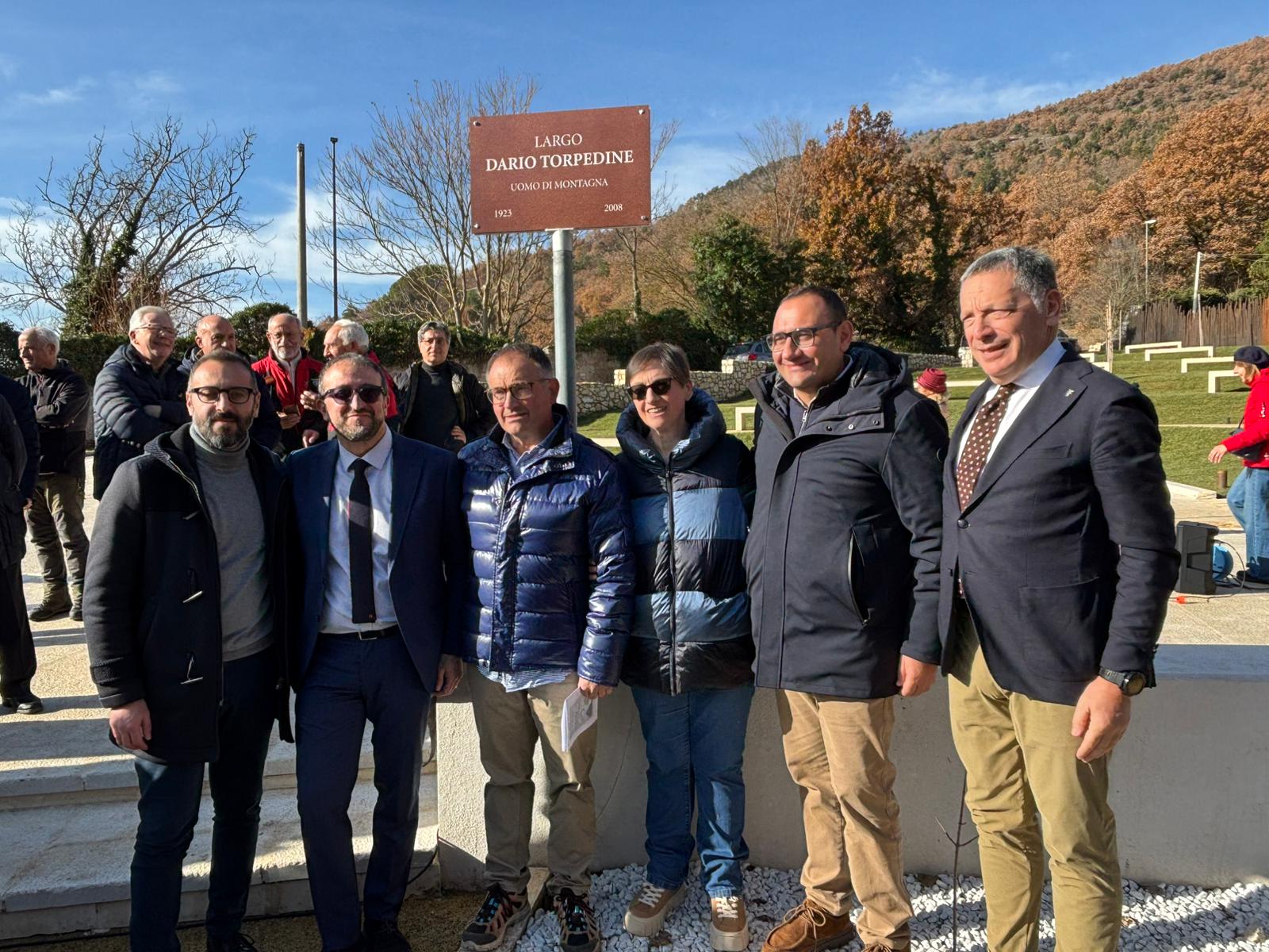 Lo spazio è stato denominato “Largo Dario Torpedine“, storico segretario della sezione CAI dell’Aquila per oltre 50 anni. A suggello dell’intitolazione, il Club Alpino Italiano del capoluogo abruzzese ha donato una targa commemorativa, scoperta nel corso dell’iniziativa.