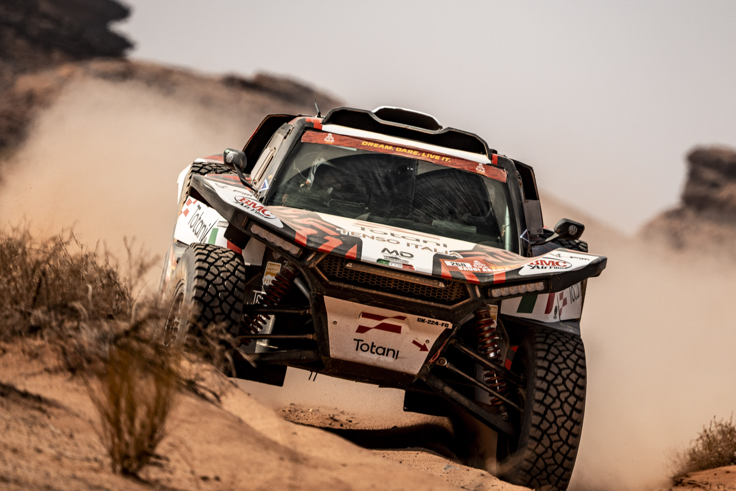 La giornata di oggi aveva una sola parola d’ordine: prudenza, e valeva per i fratelli Totani così come per tutti gli altri equipaggi in gara. Perché oggi si è corsa la prima parte della prima tappa marathon delle due previste in questa Dakar2026, e stasera al bivacco ‘refuge’ non ci saranno le assistenze. Certo, i piloti non saranno soli e i più fortunati, fra cui gli aquilani, avranno i loro camion di assistenza veloce che arriveranno, tardi, ma arriveranno, e potranno garantire una piccola manutenzione e soprattutto uno sguardo attento a tutti i veicoli della squadra fornendo gli eventuali ricambi necessari.