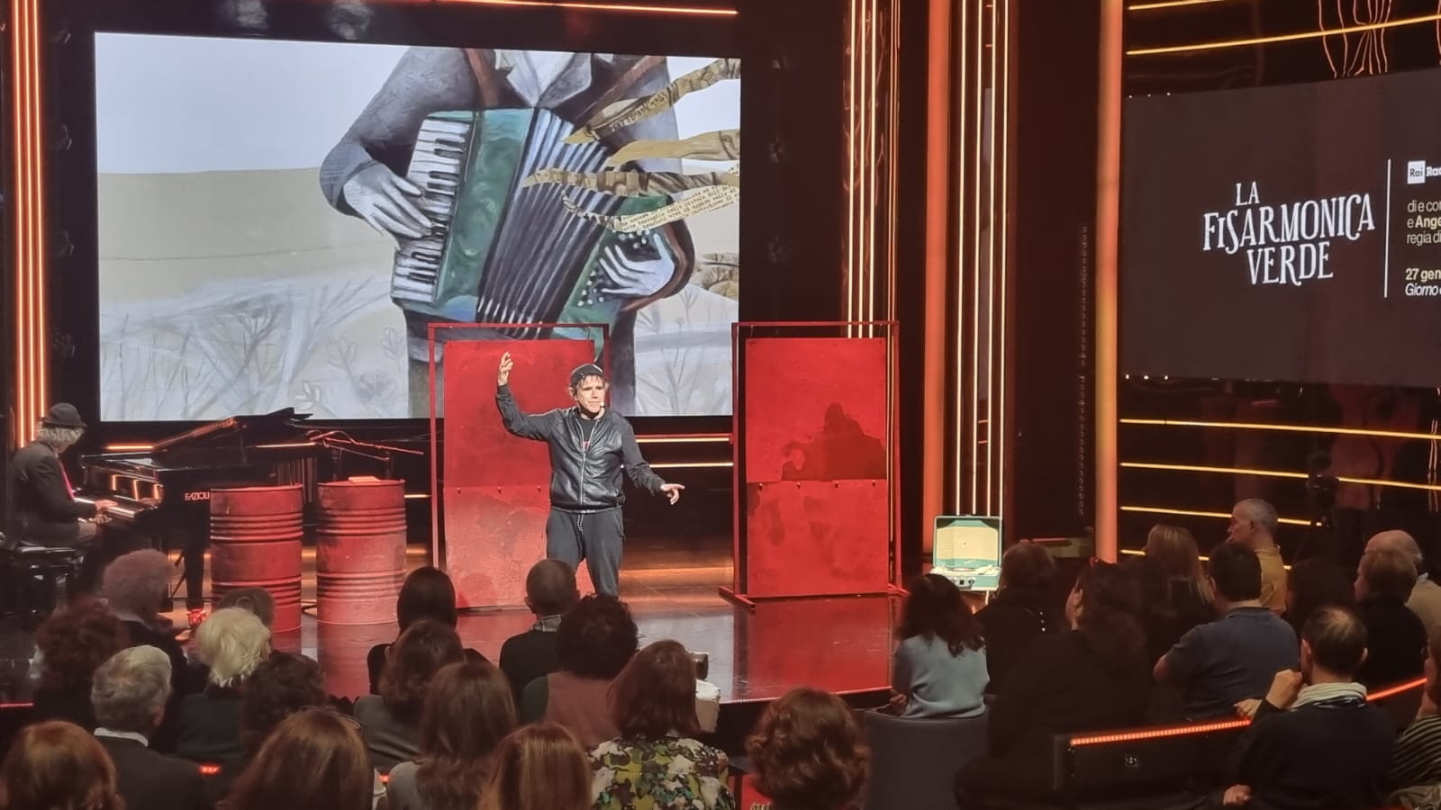 Attraverso il ritrovamento di oggetti simbolici — un cappotto russo e una fisarmonica verde smeraldo — lo spettacolo ricostruisce momenti di tragedia assoluta e straordinario coraggio. La messa in scena, diretta da Ulderico Pesce con Angelo Pelini al pianoforte, affronta temi universali come il rapporto padre-figlio, l’importanza della memoria tra generazioni e la difesa dei diritti umani.