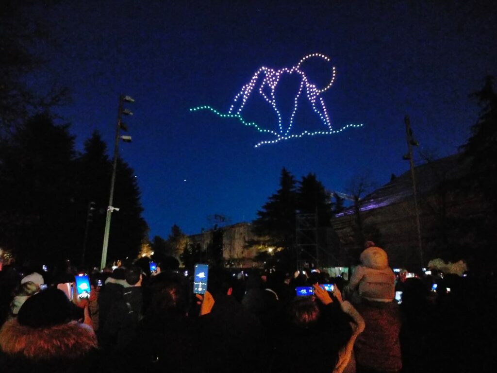 Gli eventi si sono spostati nel pomeriggio in centro storico dove alle 17.30, in piazza Battaglione Alpini, si è dato inizio agli appuntamenti serali dedicati alla cittadinanza con il Drone Show “Sotto un Unico Cielo“. Tantissime le persone riunitesi nell’area della Fontana Luminosa, con lo sguardo all’insù al calar della sera.