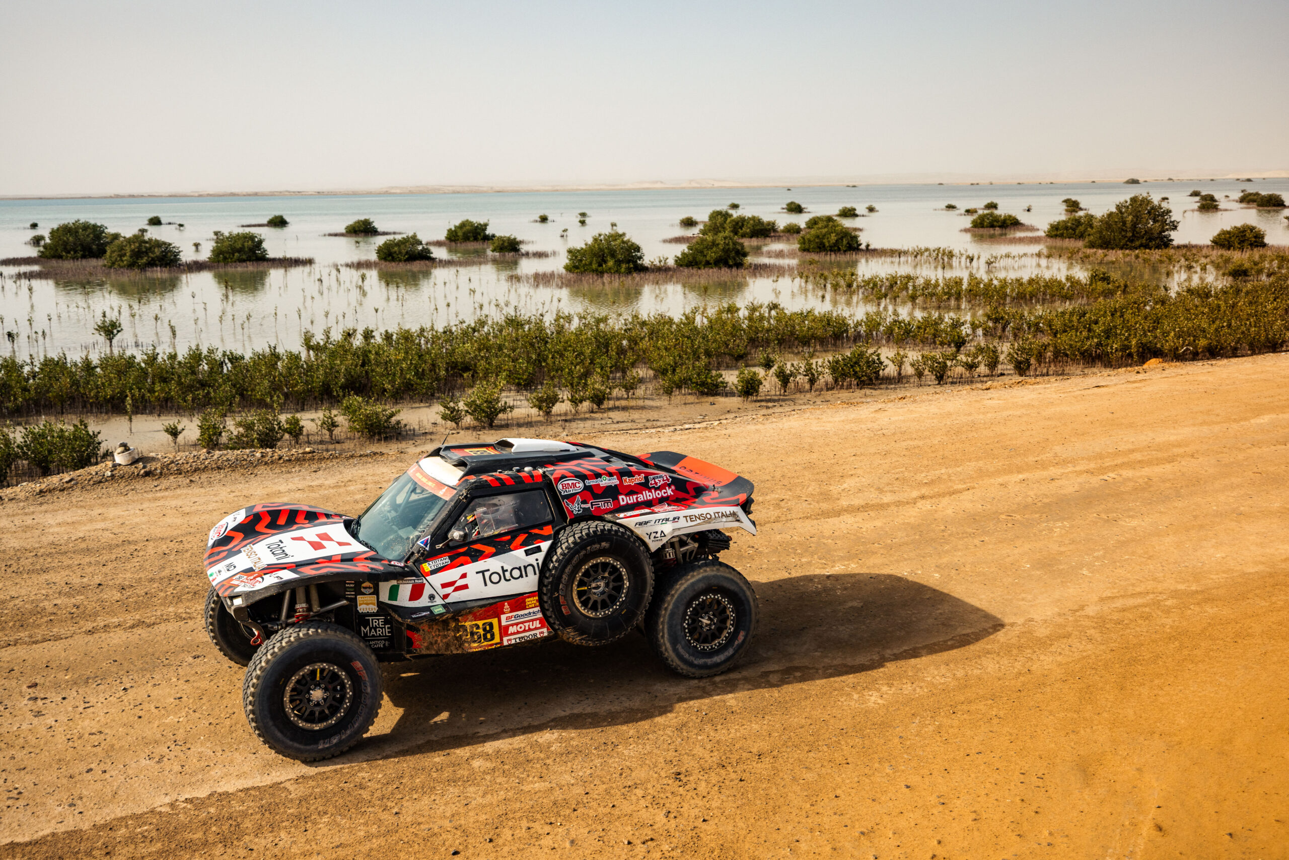 La speciale li vede 81esimi al traguardo di Yanbu, in una prova dove davvero si poteva buttare via tutto il lavoro di due settimane, come ha fatto più di qualcuno. E in effetti lo scenario dell’ultimo settore selettivo ricorda da vicino i cartoni animati della ‘Corsa più pazza del mondo’ con Penelope Pitstop, Dick Dastardly e il cane Muttley e lo racconta bene, nei particolari, Tito Totani mentre attende di salire sul podio.