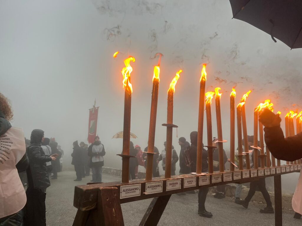 La cerimonia è iniziata alle ore 15 con una fiaccolata fino all’obelisco, cui è seguito l’alzabandiera con il silenzio intonato dalla tromba, con deposizioni di fiori e corone.