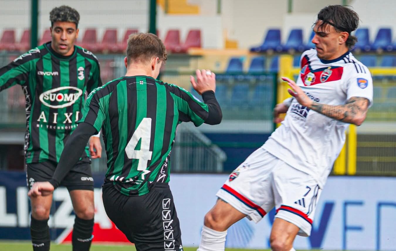 Sul punto di battuta va Di Renzo, che disegna una traiettoria tesa che supera la barriera neroverde e si insacca alla sinistra di un immobile Mercorelli.