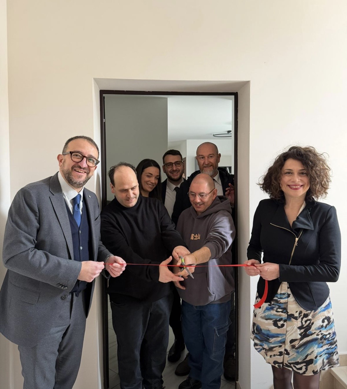 Il taglio del nastro, questa mattina, e la consegna dell’appartamento a Gianluca e Valerio, i primi inquilini della casa, alla presenza del sindaco Pierluigi Biondi e dell’assessore alle Politiche sociali Manuela Tursini.