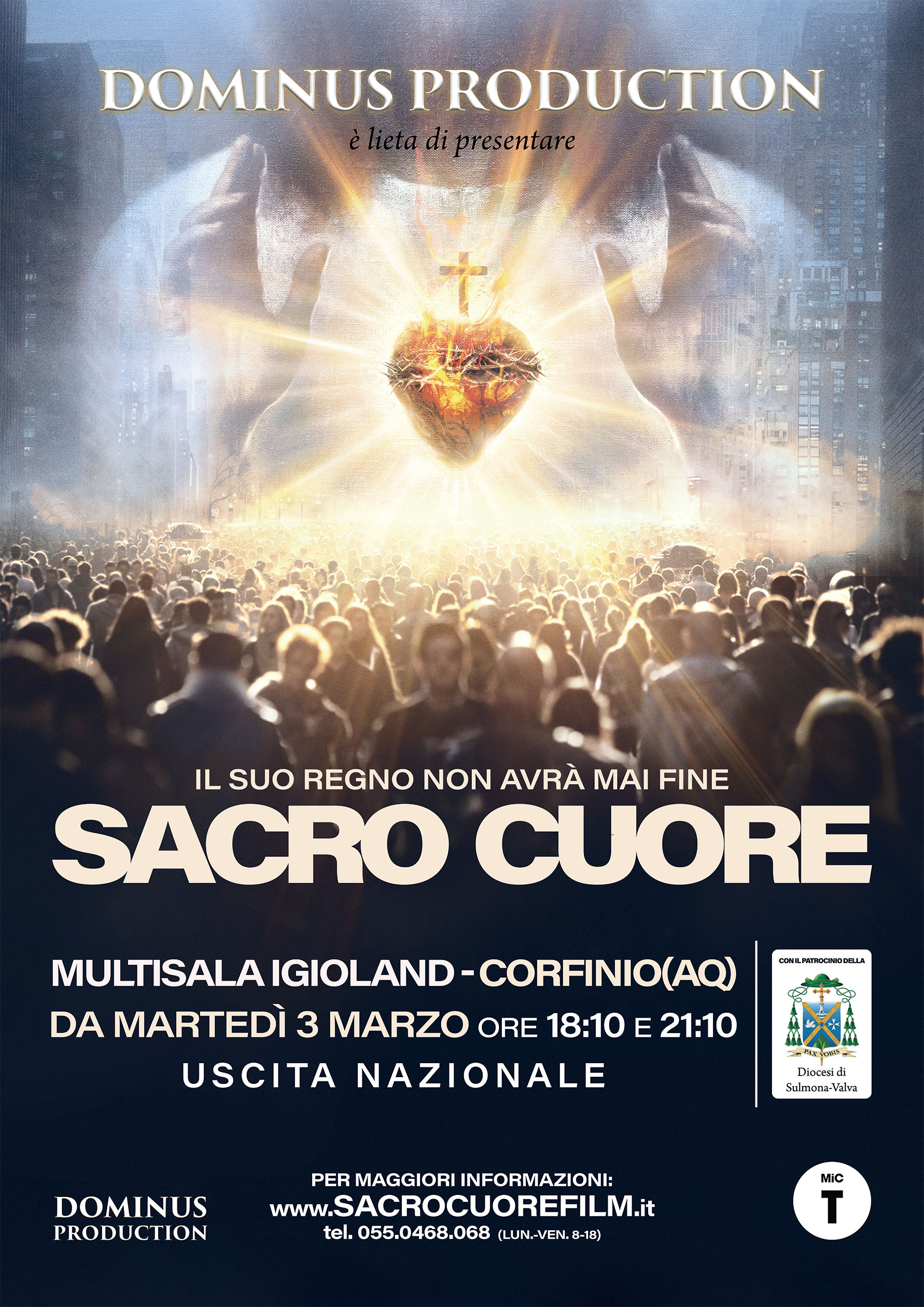 «La realizzazione di questo evento è il risultato di una sinergia che ha visto coinvolti diversi attori. La Diocesi desidera esprimere un sincero ringraziamento alla direzione della Multisala Igioland per la squisita disponibilità e alla Dominus Production per l’impegno e la professionalità profusi nel promuovere un’opera di tale spessore – scrive la diocesi in una nota – Un ringraziamento particolare va alla Sig.ra Luisa Rita Zaccardelli di Raiano, referente diocesana delle Guardie d’Onore del Sacro Cuore, il cui instancabile operato è stato determinante per coordinare l’iniziativa e favorire la diffusione della devozione al Sacro Cuore di Gesù nella nostra comunità diocesana».