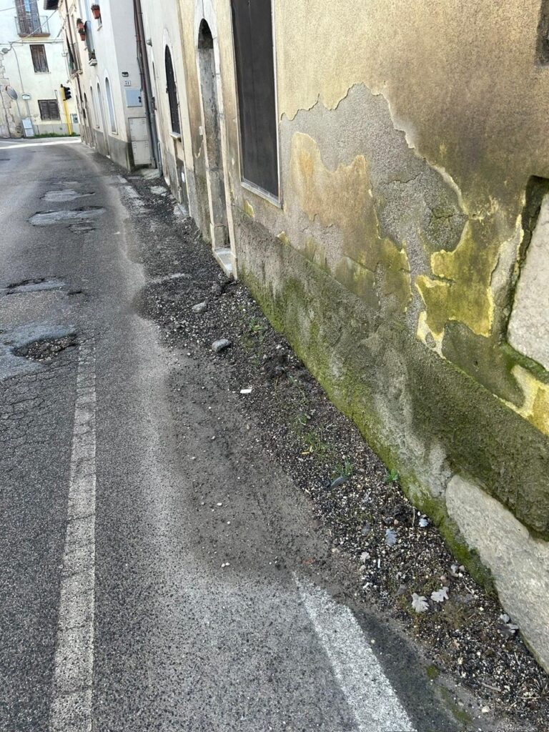 Da come si può vedere nelle foto, salta all’occhio l‘accumulo di detriti contro le pareti (esterne) delle abitazioni e/o pertinenze varie. Accumuli, spiega Crosta, «causati dalla corrivazione delle acque meteoriche e delle perdite della rete idrica che, anzichè finire nella rete fognaria, torrentiziano a pelo libero sulle strade: gli accumuli e le acque comportando un incremento dell’umidità di risalita e conseguente danno (a causa dei cicli di gelo-disgelo) con disgregazione degli intonaci e della muratura; la costante presenza di acqua nelle murature compromette anche la qualità muraria e la salubrità degli ambienti».