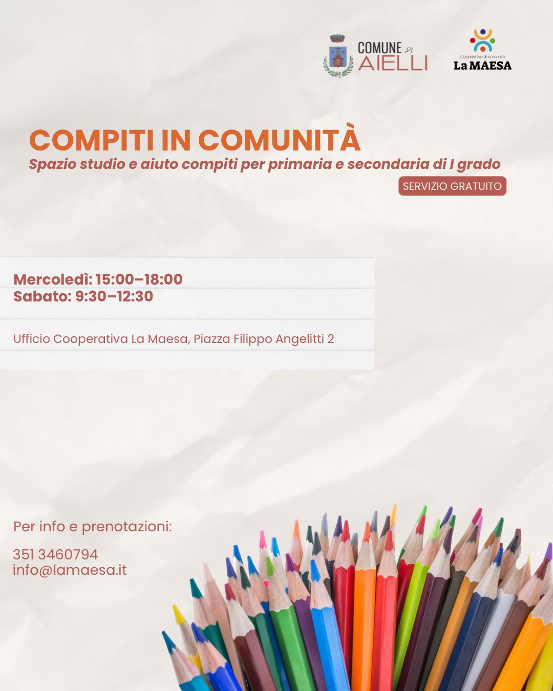 Con il servizio di aiuto compiti vogliamo offrire un sostegno reale e accessibile a tutti, senza alcun costo per le famiglie».