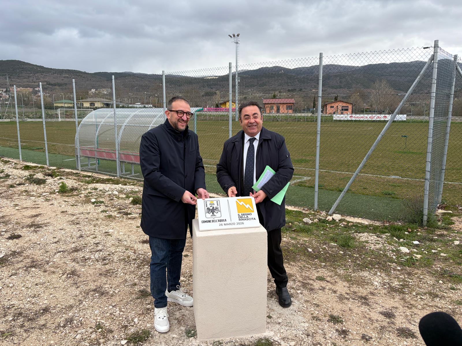 Sono partiti ufficialmente i lavori per la realizzazione della tribuna coperta del campo di calcio di Paganica. Alla cerimonia di inaugurazione hanno preso parte il sindaco dell’Aquila, Pierluigi Biondi, e l’assessore allo Sport, Vito Colonna.