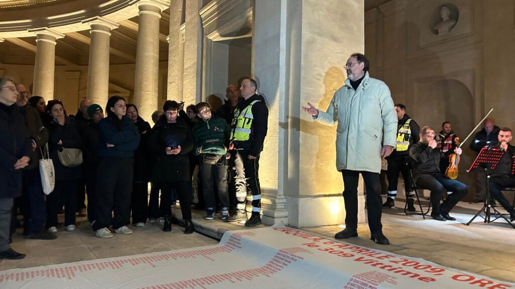 Il primo appuntamento alle 21:00 alla Villa Comunale (Piazzale dell’Emiciclo), dove sono stati distribuiti dei fiori ai partecipanti. Alle 21:30, sotto il porticato dell’Emiciclo, il ricordo è stato accompagnato dalle note dei Solisti Aquilani che hanno offerto un momento di raccoglimento in musica prima di trasferirsi verso il Parco della Memoria. Il momento più significativo, tuttavia è stato vissuto dalla comunità locale all’interno del luogo adibito al ricordo di quelle 309 anime strappate alla città.