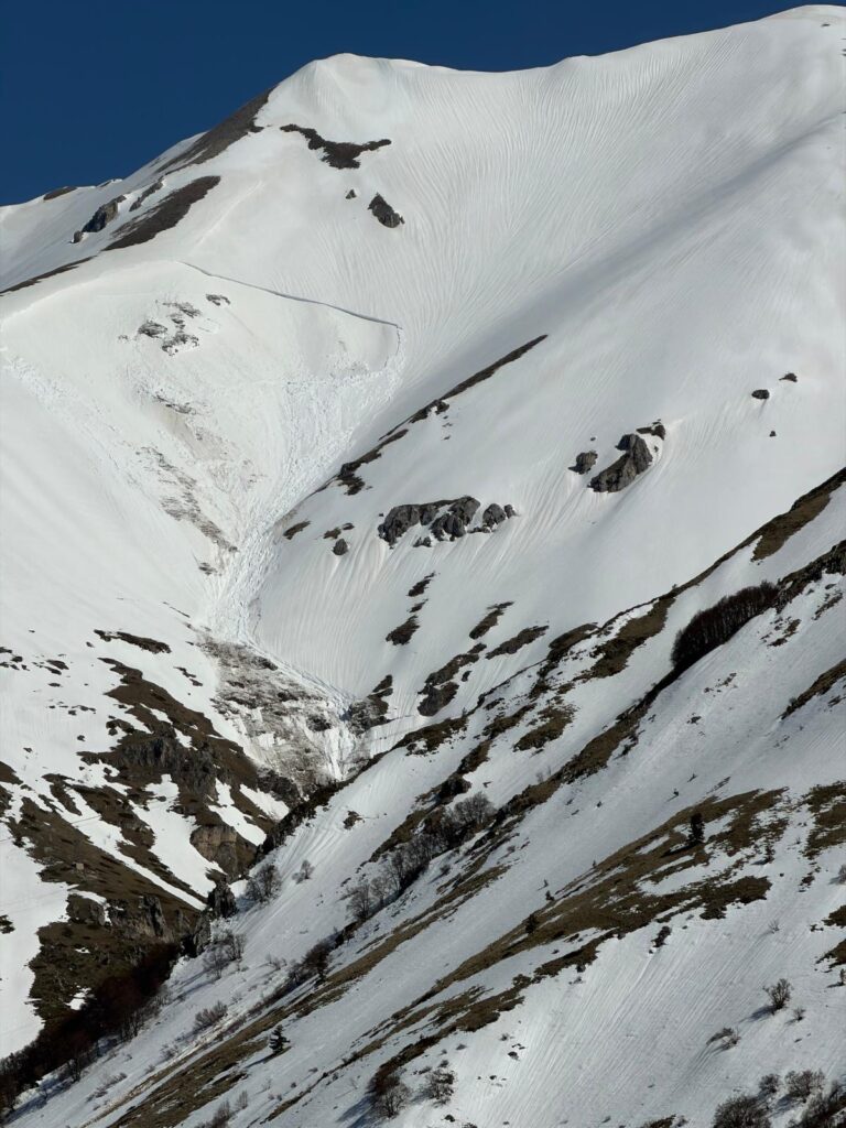 La slavina si è staccata in località i Valloni, tra Campo Imperatore e Fonte Cerreto, base della funivia, dall’area sovrastante la grotta della Pala, scendendo fin nei valloni.