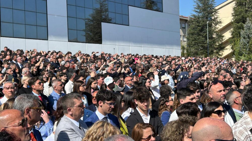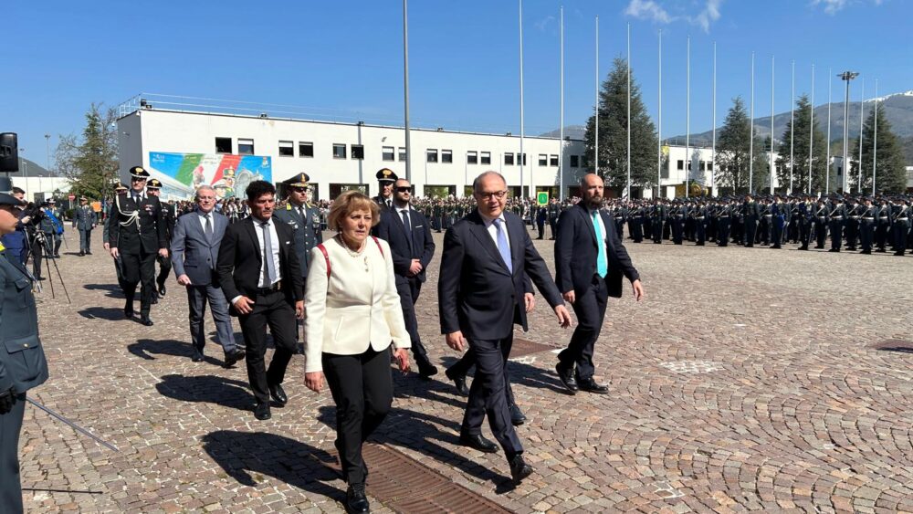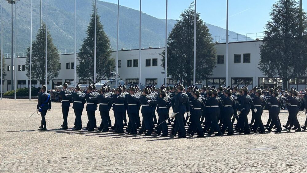 «Oggi per la Guardia di Finanza e per lo Stato è un giorno di festa perché 1200 nostri ragazzi hanno deciso di dedicare la loro vita al servizio dello Stato, al servizio delle nostre comunità e di far parte integrante della squadra della Guardia di Finanza che a sua volta parte dalla squadra dello Stato, una squadra vincente, basata su valori condivisi, e noi siamo orgogliosi e onorati che questi ragazzi abbiano deciso di entrare nel corpo della Guardia di Finanza – ha detto Augelli – La scuola dell’Aquila è un asset strategico, il comparto della formazione della Guardia di Finanza è un comando articolato e numeroso e, come sono solito dire, è una famiglia di circa 9 mila persone, di cui circa 6 mila in addestramento e 3 mila fanno parte del quadro permanente, gli istruttori. La maggior parte di questi allievi sono qui all’Aquila che l’hub più importante e numeroso: tanti sono gli allievi e tutto ciò che gira intorno agli allievi per far sì che possano avere al termine del triennio le giuste skill per poter incidere in termini di legalità e correttezza per far cresce le nostre comunità. E’ bene quindi che a questi allievi non manchi nulla in termini non solo valoriali, ma anche di mezzi, di strumenti, di preparazione. E’ una sfida che accettiamo volentieri. sicuri di vincerla».