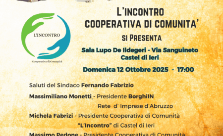 Il 12 ottobre, nella sala Nzeb Lupo De Ildegeri di Castel di Ieri sarà presentata la Cooperativa di Comunità L'Incontro , un progetto condiviso nato dal territorio e per il territorio, con l'obiettivo di valorizzare risorse locali,...