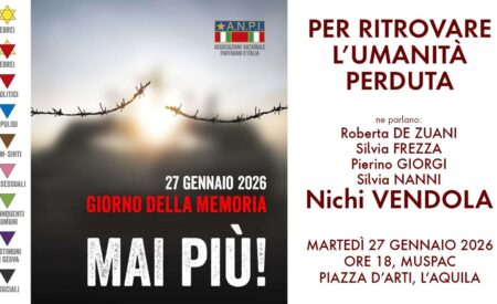 In occasione della Giornata della Memoria della Shoah, il 27 gennaio, il circolo aquilano dell’Associazione Nazionale Partigiani d’Italia (ANPI) promuove un momento di riflessione e confronto per ribadire il valore universale del ricordo...