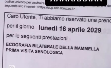 Ottobre è il mese della prevenzione del tumore al seno, ma all'ospedale dell'Aquila le prime visite senologiche disponibili con ecografia ci sono solo nel 2029. A denunciare le lunghissime liste d'attesa per una visita senologica al San...